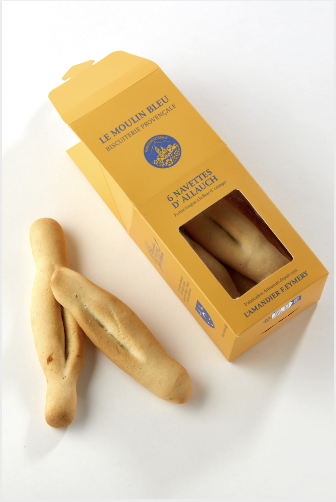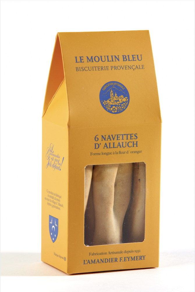 Dans une belle boite à offir, 6 navettes longues à la fleur d'oranger sont conditionnées par nos soins.