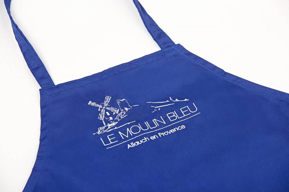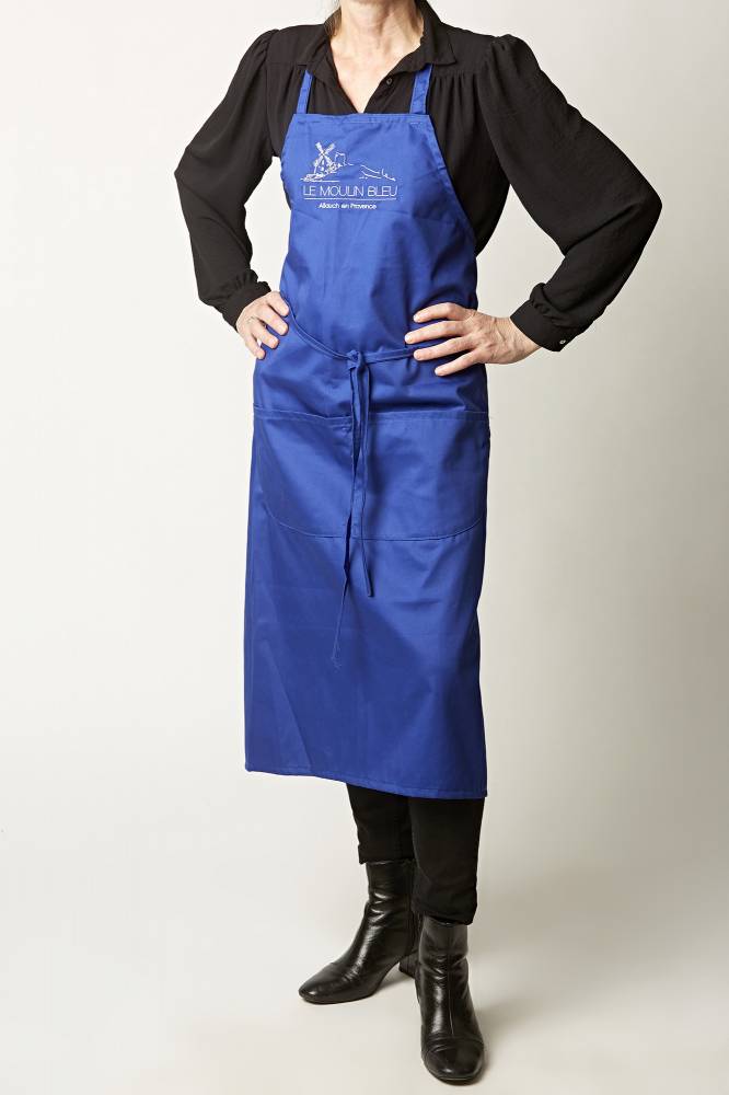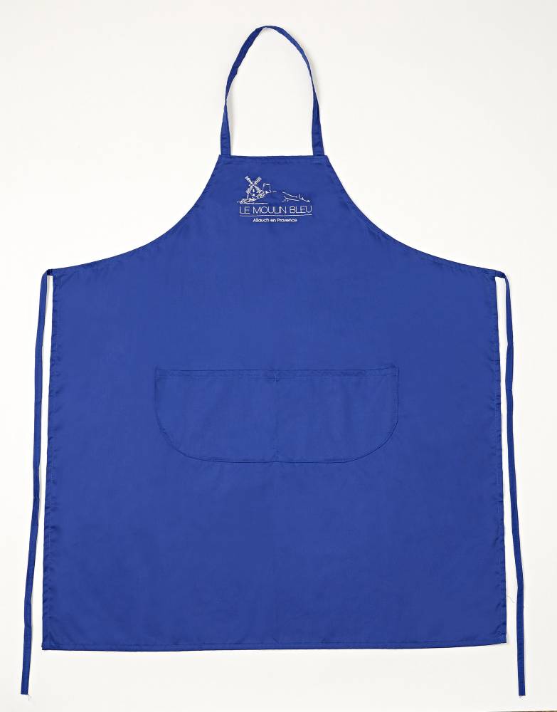 Notre tablier bleu est en coton ( 35% ) & polyster ( 65% ), lavable en machine.
