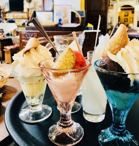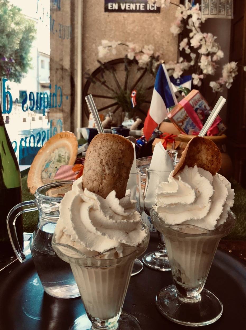 Cet été, venez déguster nos glaces artisanales sur notre terrasse ombragée, devant notre boutique.